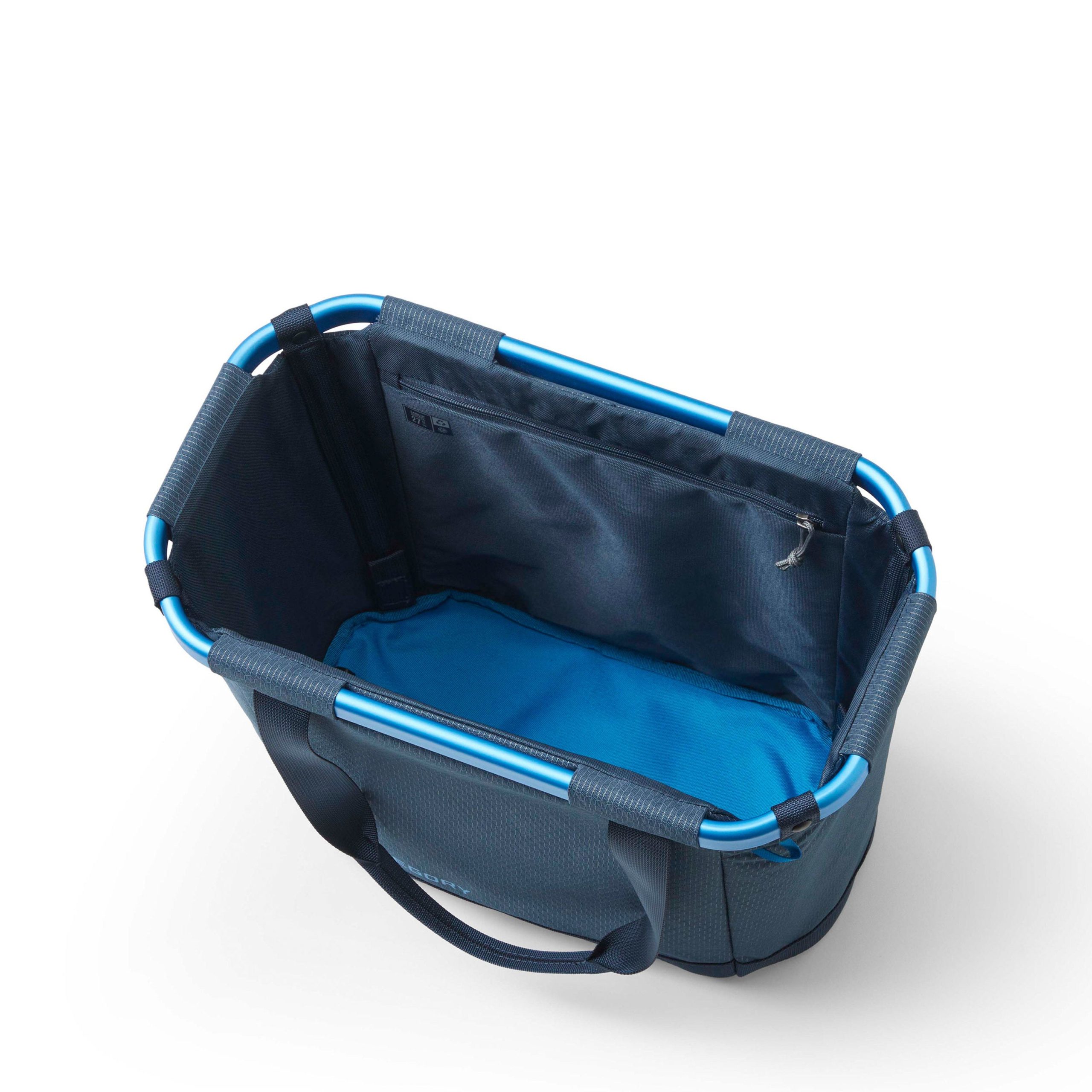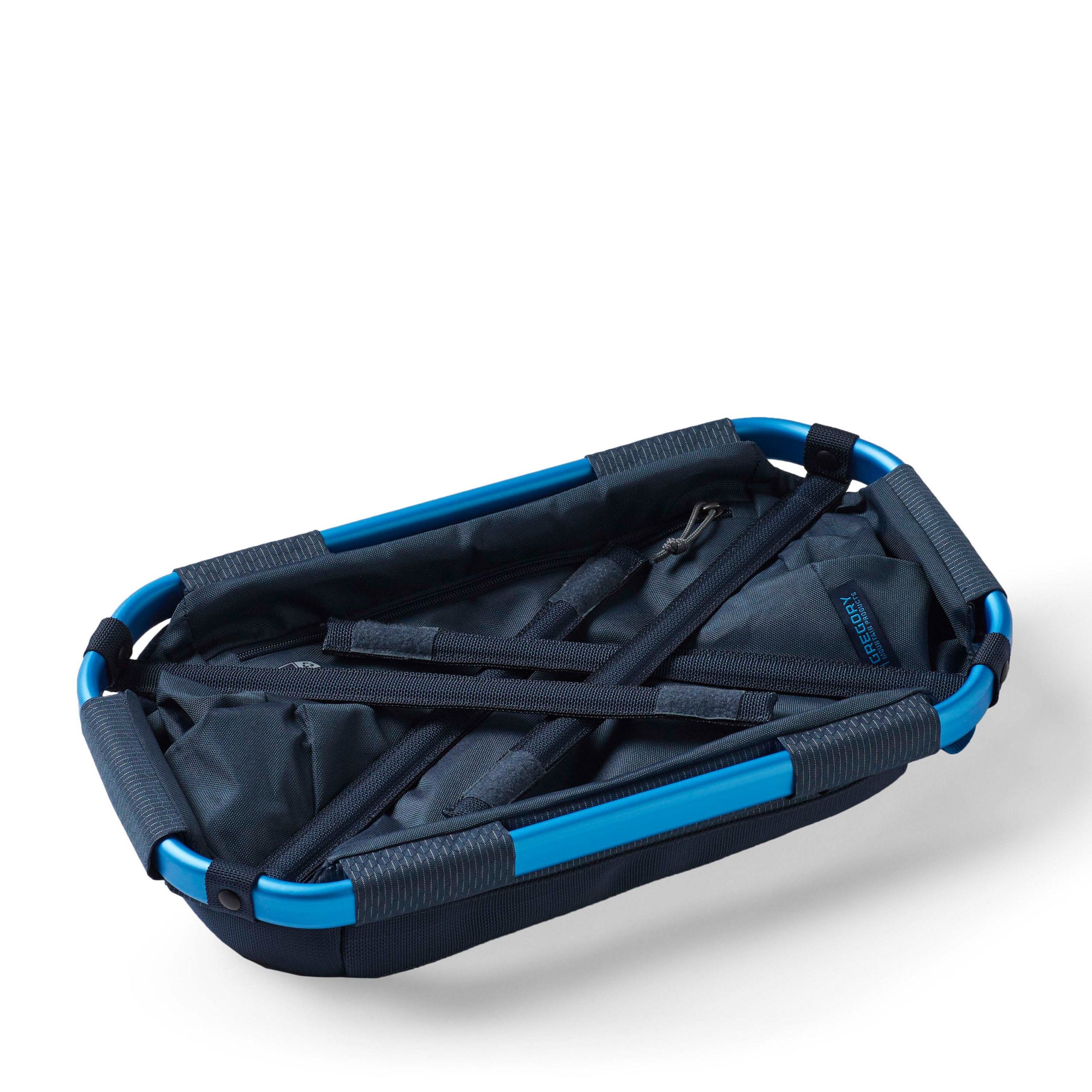 A gear tote designed for quick and easy access, made with a collapsible, aluminum frame, connected to a flexible base for durability and protection. Designed to fit behind the front seat of your vehicle to make use of the footwell space, this tote quickly packs down to save space when not in use and comes with a storage stuff sack. Complete with grab handles and made from blended recycled fabric to minimize its carbon footprint.