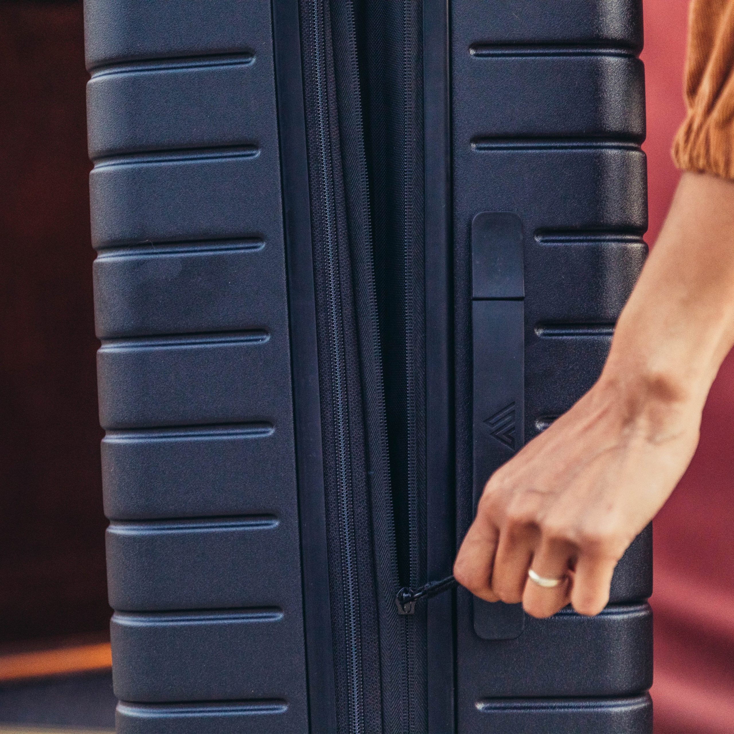The Quadro 2-Piece Set includes a carry-on and large roller. Both cases are equipped with integrated TSA approved zipper lock and Fuzion™ zippers by YKK® to provide security and reliability. The unique Quadro spherical wheels provide the ultimate in four-wheel mobility.
